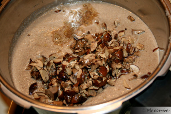 Then chop up remaining mushrooms and stir them into to the puree, along with any remaining broth.