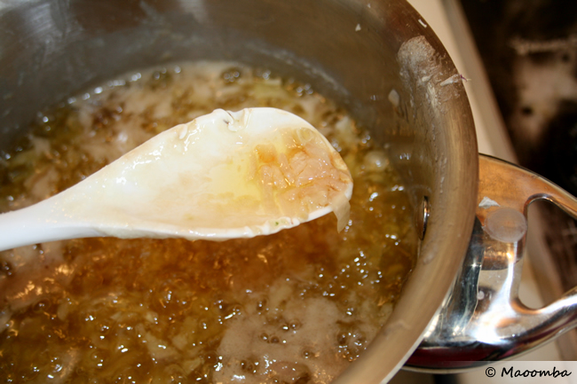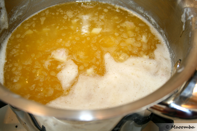 And for insight into the process, I turned to Anjuli of Smart Mouth’s post called Homemade Indian ghee if you dare. I highly recommend you visit her post for troubleshooting and cooking tips based on her family’s way of making ghee.